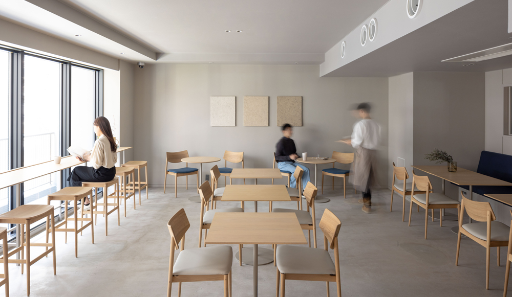 地域の方も利用できるカフェが併設され、