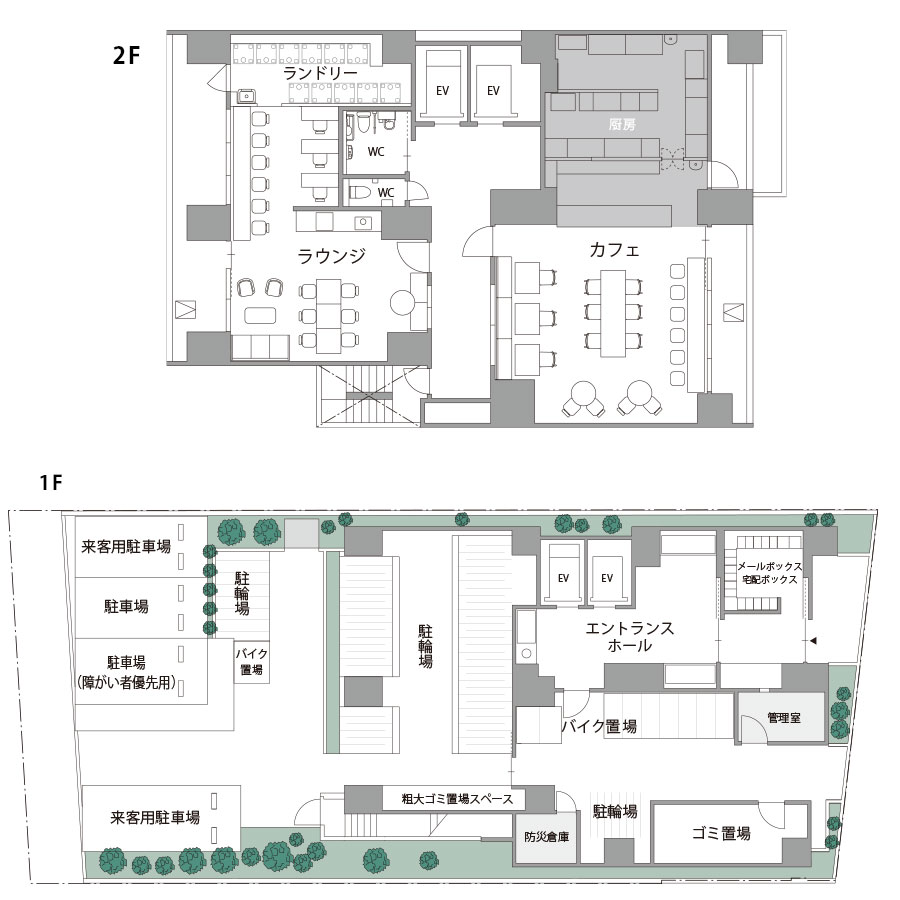 専有部にラウンジ、カフェ。